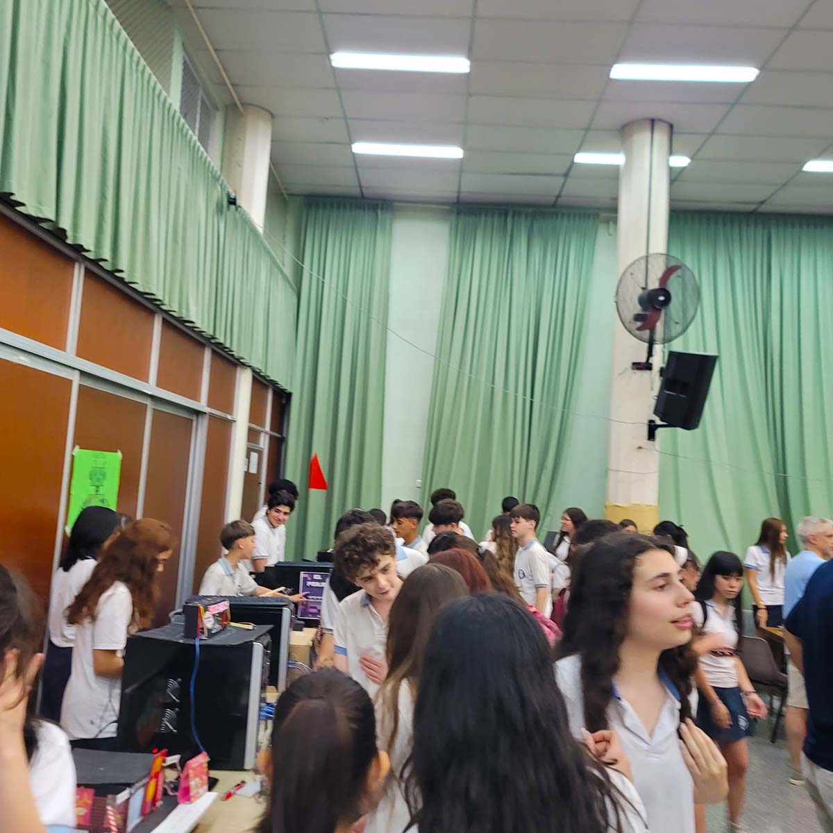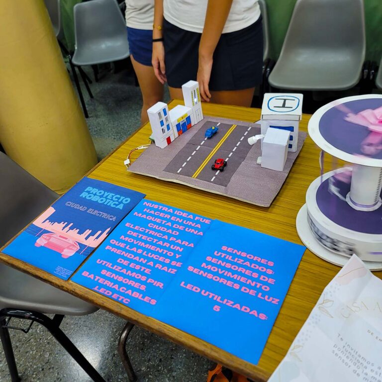 Los estudiantes de ambos turnos participaron de la muestra de Robótica, organizada por los docentes de todas las modalidades. En el salón de actos se dispusieron computadoras para compartir lo realizado por los estudiantes durante el año y para proponer experiencias y juegos a los participantes.